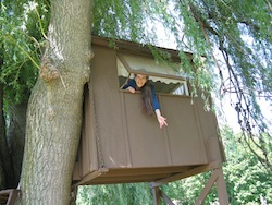One of the things I discovered that first Spring we were together, was that Helen loved to climb trees. We'd go for a walk in the woods and as soon as she saw a tree with a low first branch, she'd take off her shoes and begin climbing. We joked that she had prehensile feet and toes, with which she seemed able to grasp any branch and stay balanced on it. I, on the other hand, had never climbed trees. Raised by parents who had lost so much during the Holocaust, my brother and I were hovered over to make sure we never did anything where we could hurt ourselves. San did climb a tree once when he was ten years old — and fell out of it, breaking his elbow. That was that for tree climbing. Even with Helen's playful encouragement and the emboldening effects of love, I usually only managed to climb into the lowest branches of a tree. Meanwhile, Helen would climb 20-30 feet into the air without any signs of hesitation or fear.