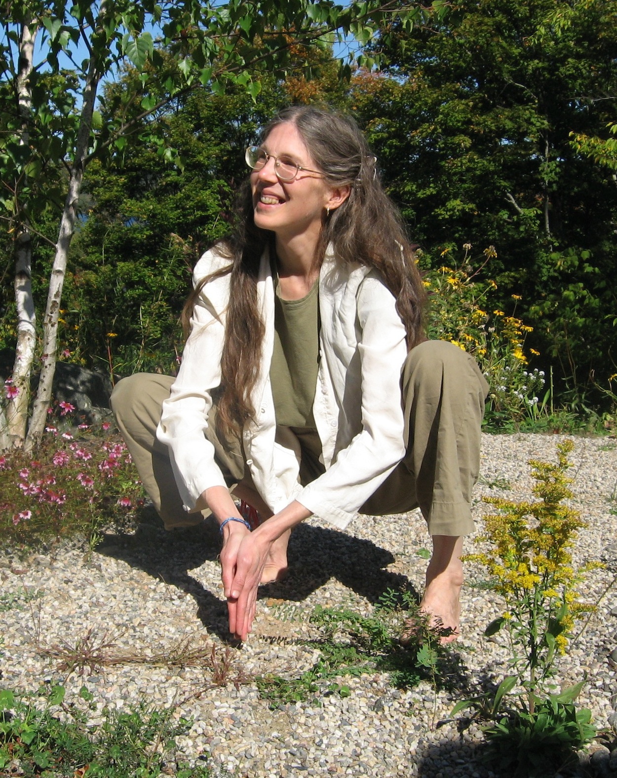 She also loved going barefoot. After each long Michigan winter (during which she'd often lie down on the ground to make "angels in the snow") when she'd been wearing boots, and her barefoot callouses had gotten soft, she'd be out at the first sign of spring, and within days she could walk barefoot on gravel.